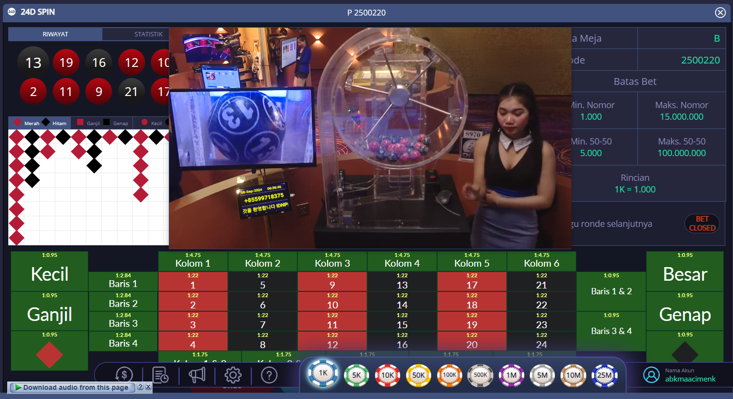 2. Tentukan Jumlah Taruhan