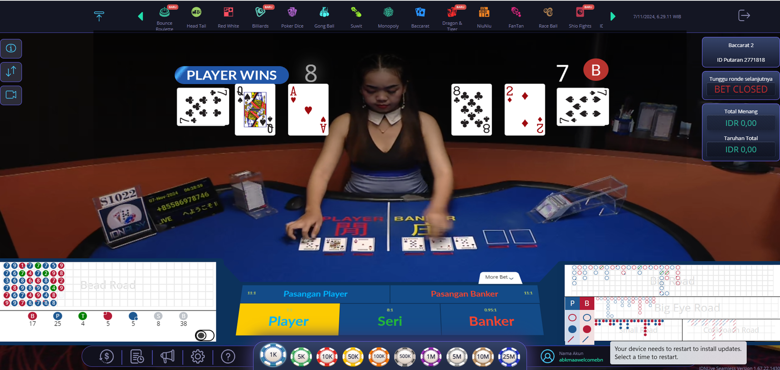 Setelah hasil di umumkan, Anda dapat memilih untuk melanjutkan permainan dengan taruhan yang sama atau mengubah jumlah taruhan Anda. Jika Anda ingin mengubah taruhan atau beralih ke meja lain, IDN Live memungkinkan fleksibilitas tersebut.