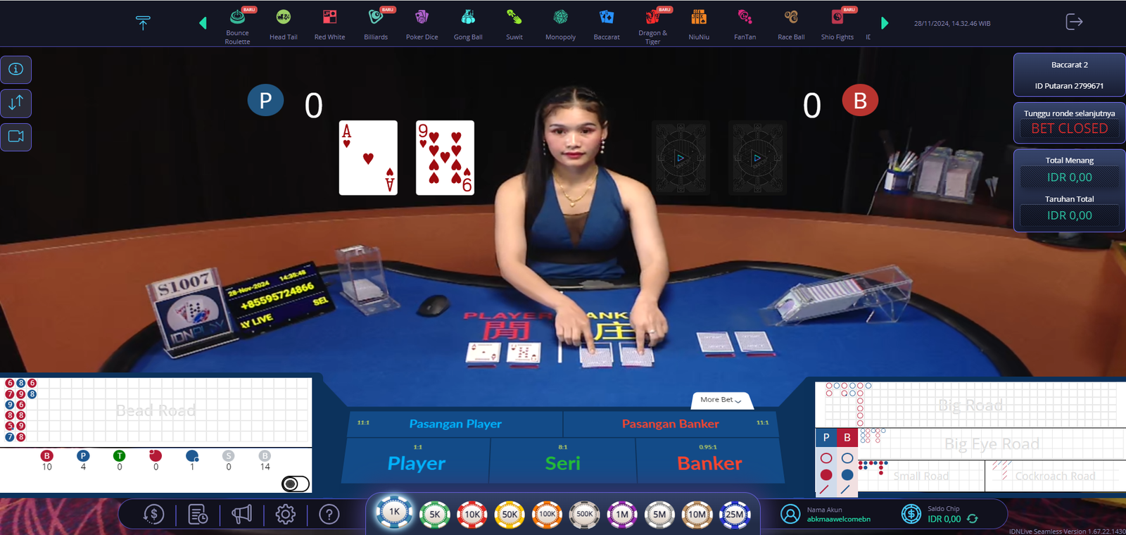 Di IDN Live, Baccarat C adalah salah satu varian permainan Baccarat yang menawarkan pengalaman langsung dengan dealer profesional melalui siaran langsung (live streaming). Keunggulan utama dari permainan ini adalah interaksi real-time, yang memberikan sensasi seperti bermain di kasino sungguhan tanpa harus keluar rumah.