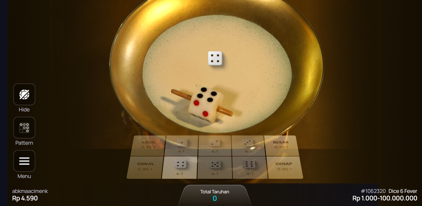 - Total Angka: Bertaruh pada total angka yang muncul dari dadu.