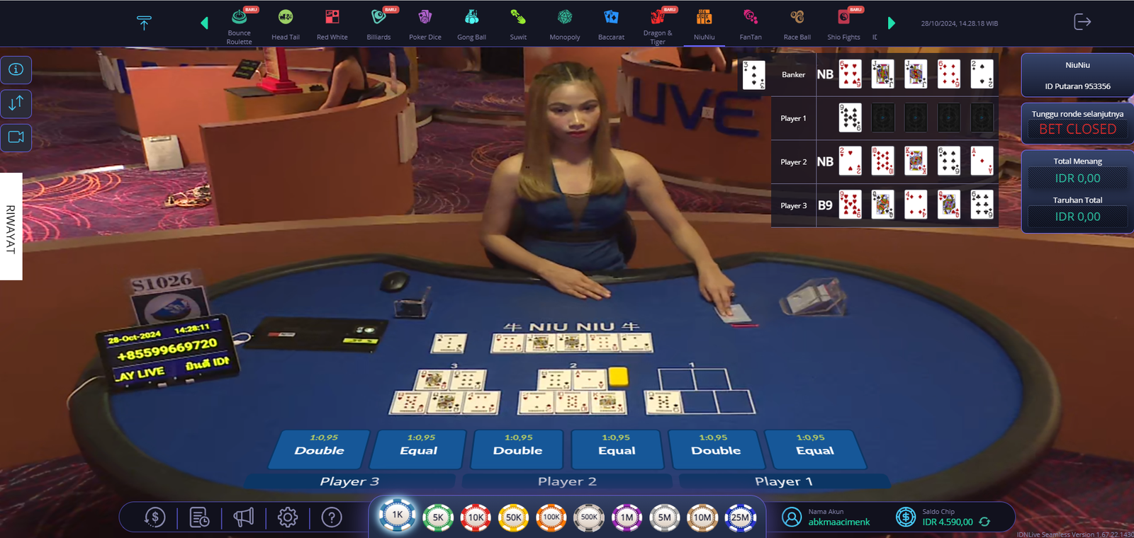 - Atur Taruhan: Semua pemain harus menetapkan nilai taruhan yang akan di pasang.