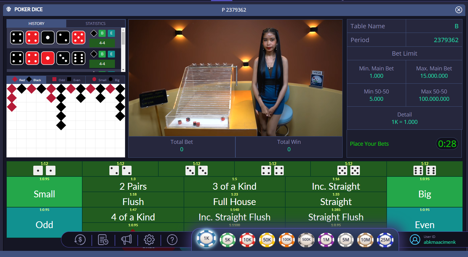 Setelah memiliki saldo, cari permainan Poker Dice di menu permainan. Klik pada opsi tersebut untuk masuk ke meja permainan.