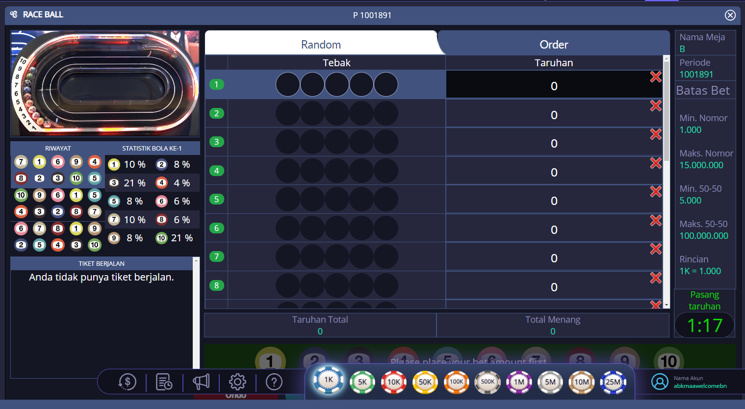 - Taruhan: Pemain dapat memasang taruhan pada bola tertentu untuk menang. Ada beberapa opsi taruhan, seperti bertaruh pada bola yang kamu yakini akan menang atau taruhan kombinasi.