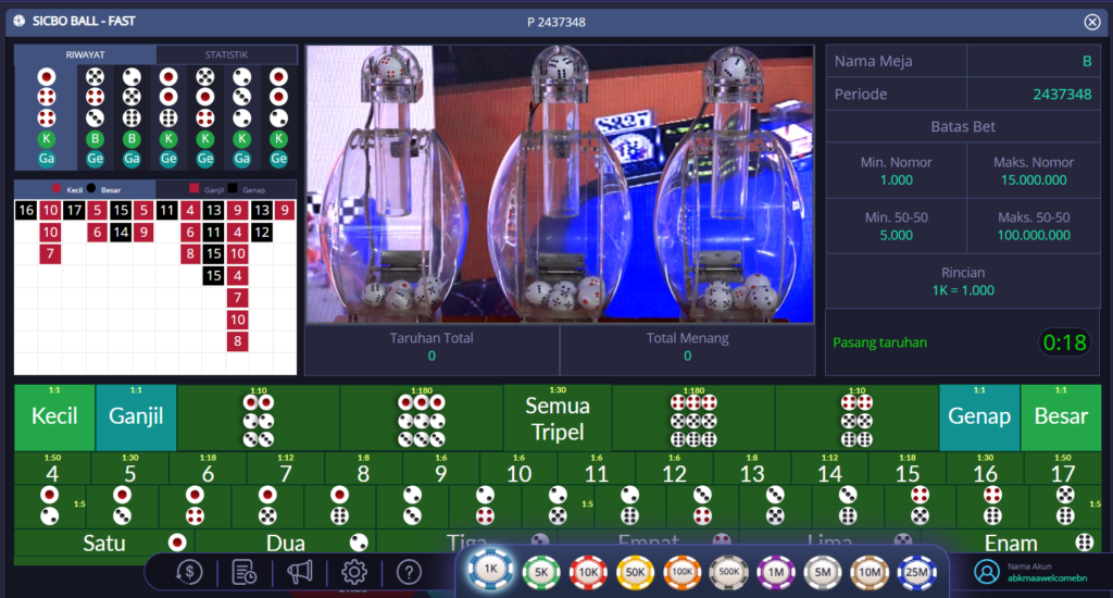 Sicbo Ball adalah permainan dadu yang berasal dari Tiongkok dan telah menjadi sangat populer di berbagai kasino internasional. Nama “Sicbo” sendiri berarti “Pasir Tiga Dadu”, yang merujuk pada penggunaan tiga buah dadu dalam permainan ini. Cara bermain Sicbo Ball cukup sederhana, tetapi ada berbagai taruhan yang dapat Anda pilih, memberikan banyak kesempatan untuk mendapatkan kemenangan.
